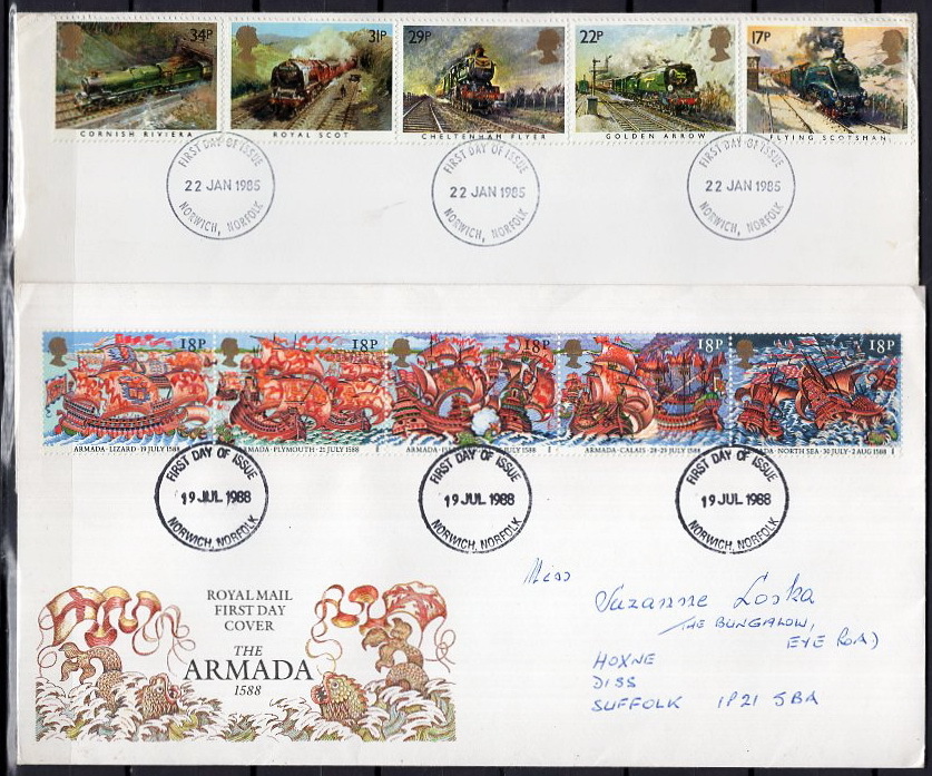 - ★1985-1988年 - イギリス - 「有名電車」5種完 + 「ロード・メイヤーズ・ショー」5種完 FDC 2枚★VM-28