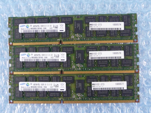 - 1CKI // 4GB 3枚セット 計12GB DDR3-1333 PC3L-10600R Registered RDIMM 2Rx4 M393B5170FH0-YH9(MN8102-373)//MITSUBISHI FT8600/210Rg取外