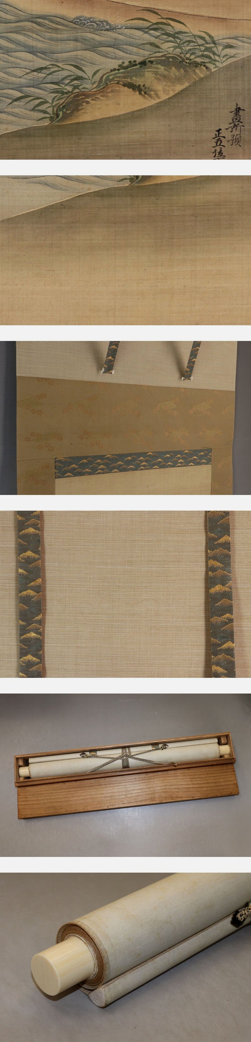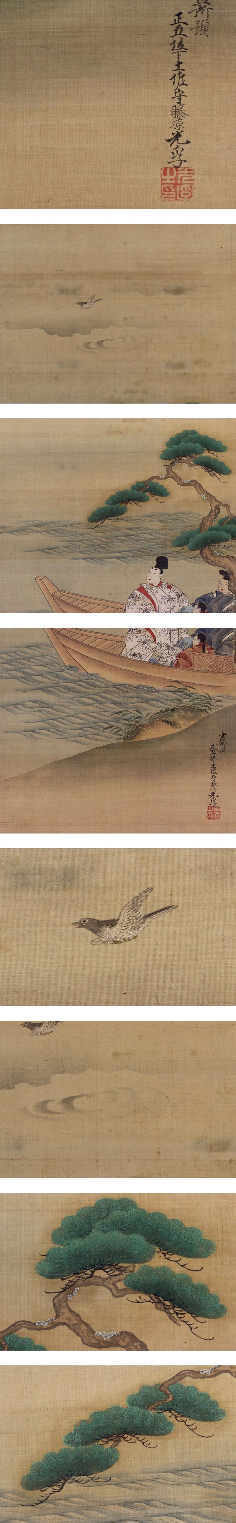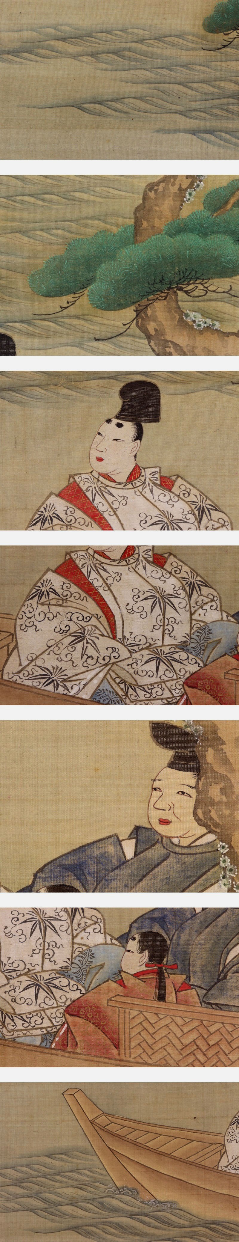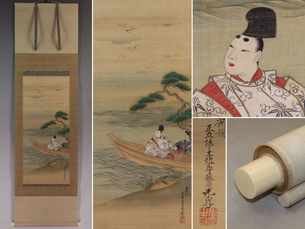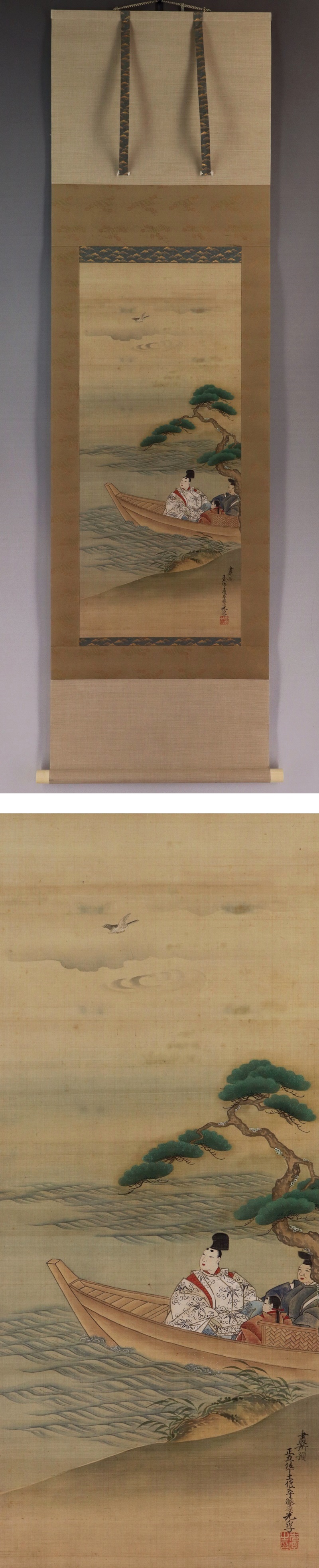 - 【真作】土佐光孚【船遊び図】◆絹本◆合箱◆掛軸 v12034