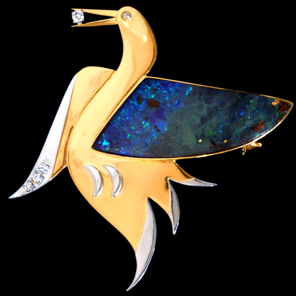 - B2194【礼】鳥 美しい大粒ボルダーオパール ダイヤ 最高級18金無垢ブローチ/ペンダントトップ 重さ14.7g 幅57.0×55.0mm
