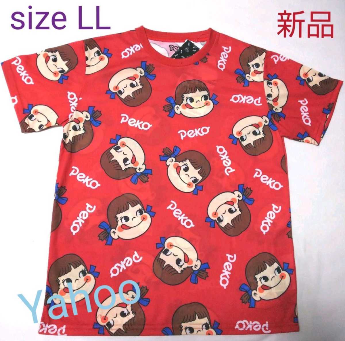 - ペコちゃん Tシャツ 男女兼用 レッド総柄 LLsize【新品・タグ付き】