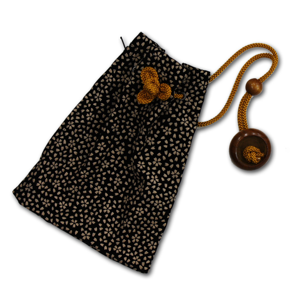 - お祭用品 巾着腰下げ 印伝調 散り桜 [黒/白] P003