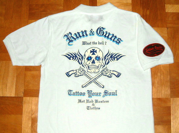 > 新品 Run&Guns バイカー仕様 100%コットン 肉厚 カノコ生地 スカル柄 半袖 ポロシャツ (Lサイズ/白) 鹿の子 ホットロッド パワーロッド66