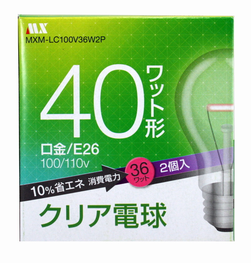 - クリア電球 40W形 2個パック 100/110V用 消費電力36W クリア電球&一般電球の代替として。