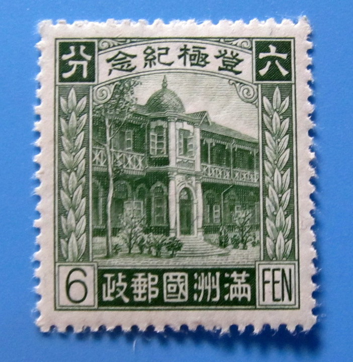 - 満州の切手★ 登極 ★1934年発行 6分 6 FEN 裏のり有り 少し折れ? 未使用