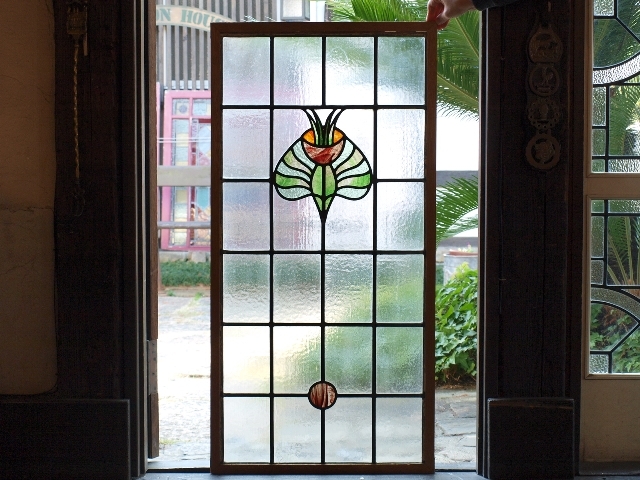 - ■アンティークステンドグラス23117 大きいサイズ 縦長 装飾 花柄 英国 イギリス 窓 ドア 内装に ■