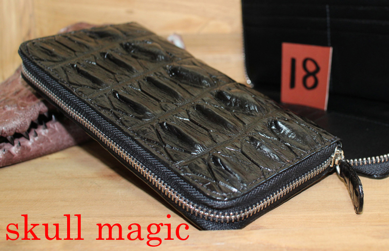 - 円高還元SALE : No18 最高級モデル! 尾~腹部分皮革 シャムクロコダイル 20mm極薄 ラウンドファスナー シャムワニ 長財布 黒内装