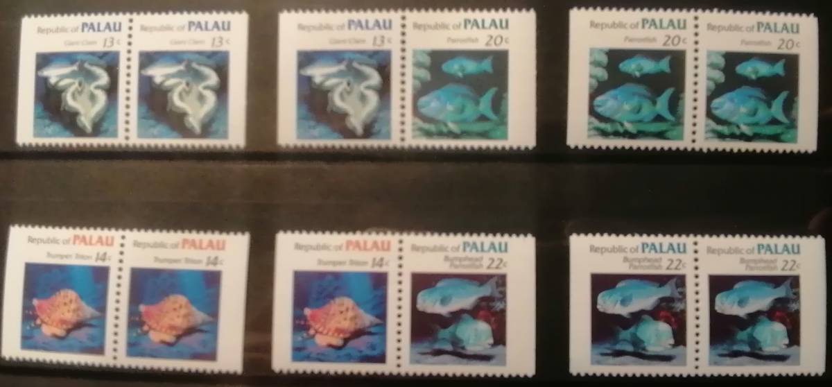 - パラウ 魚(4種コイル,6通り組み合わせペア) MNH
