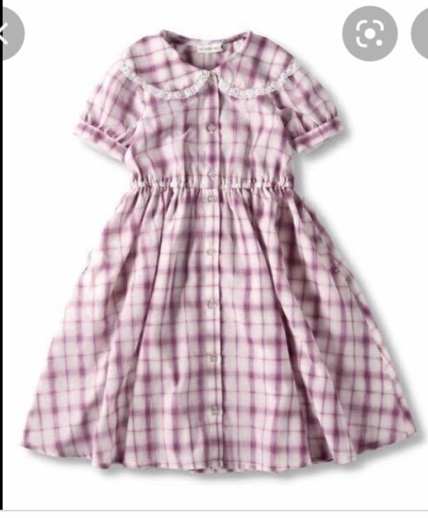 - 新品 ブランシェス チェック柄 半袖 ワンピース 90センチ パープル