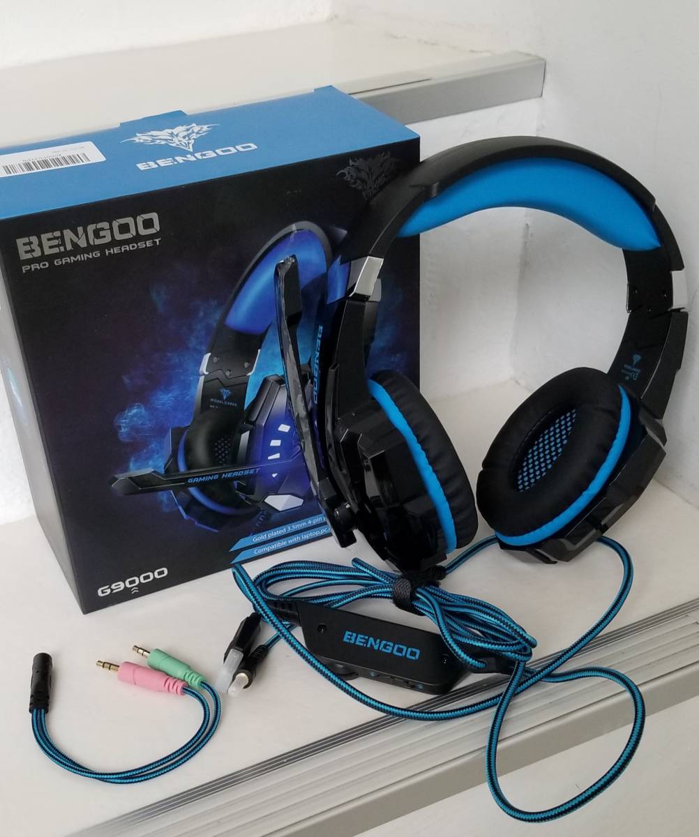 - LED光るヘッドフォン ゲーム用 Yケーブル付き ブルー 新品同様