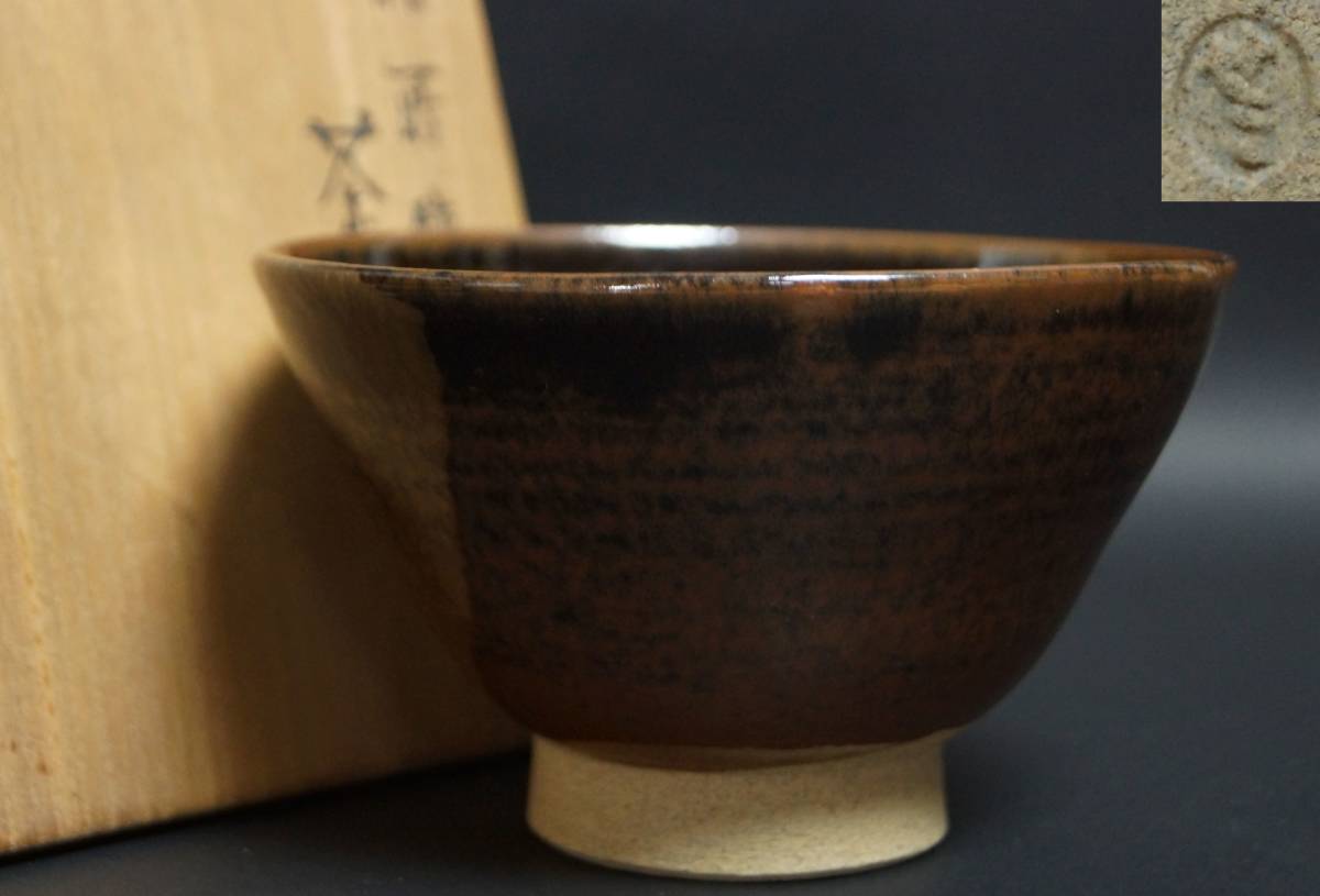 > 【閑】茶道具 膳所焼 淡海ぜぜ 茶碗 流れ釉抹茶碗 遠州七窯 共箱★美品★4D0408 ■
