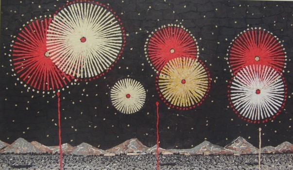 - 山下清、【花火】、希少な額装用画集より、美品、日本人画家、新品額装付、送料込み