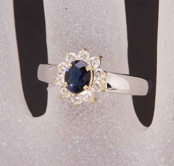 - 《質屋出品》k18/Pt900★天然サファイア0.52ct+ダイアモンドリング★k-3451