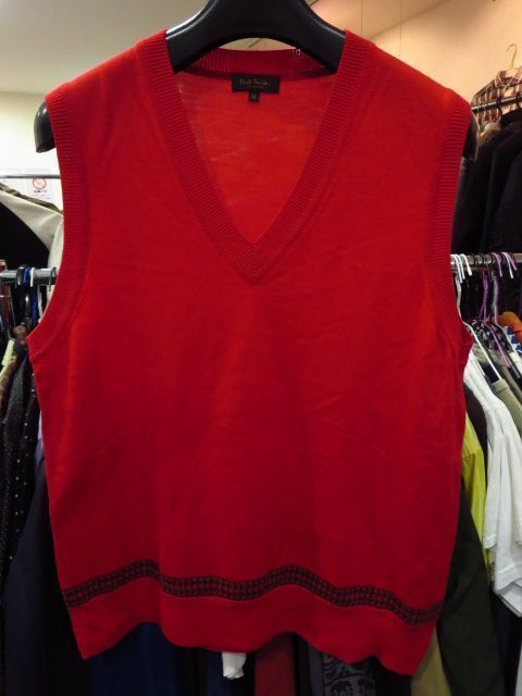 - PAUL SMITH ポールスミス Vネック 模様 ニットベスト 赤 レッド RED M