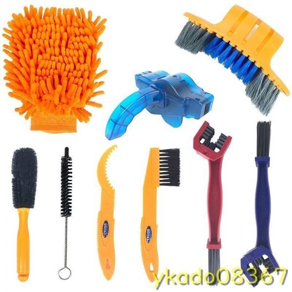 > P1421: バイククリーニングツールセット 9パック 折りたたみ自転車チェーン/クランク/スプラケット/タイヤコーナーの錆に適した