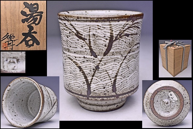 > 若林聳 ★ 湯呑 ★ 共箱 栞コピー ★ 益子 象嵌 鉄絵 草文 ★ 力強く永く付き合いたくなる逸品 ★ 食器 ★