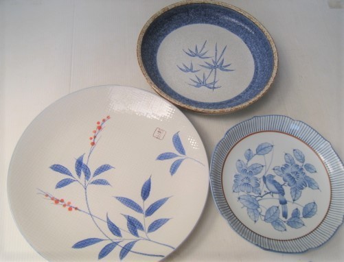 > 14N4.7-71 大皿まとめて3枚 陶器の飾り皿 オブジェ 食器 和食器 テーブルウェア 焼き物 工芸品