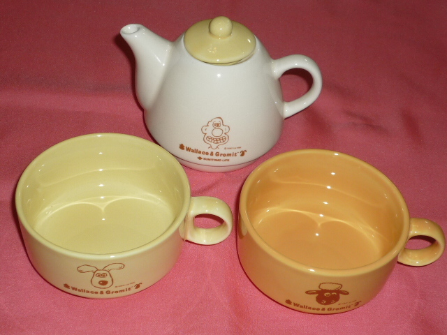 - 激レア!カワイイ♪ 住友生命 ウォレスとグルミット キャラクター 陶器製 ポット&カップ2コセット(非売品)☆