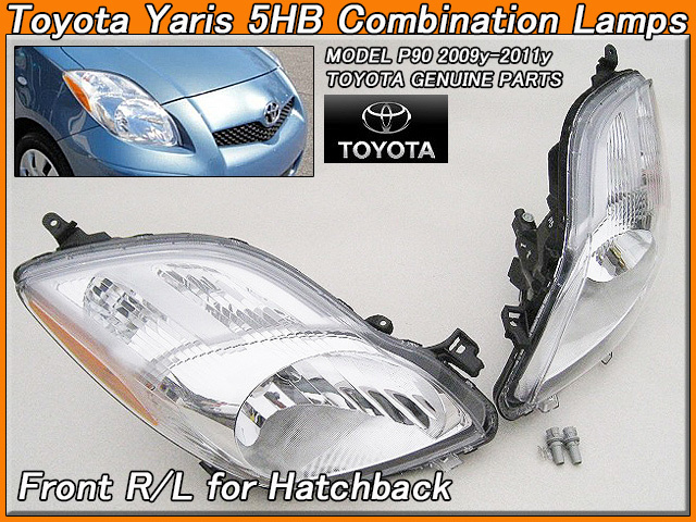> ヴィッツP90後期/TOYOTA/トヨタYARISハッチバック純正USヘッドライト左右サイドマーカー付(09-11y)/USDM北米仕様ヤリス5HBフロントランプ