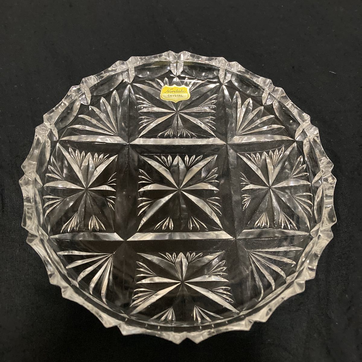 - ノリタケクリスタル noritake ビンテージ ガラス プレート 皿 雪華 レトロ 直径約16cm