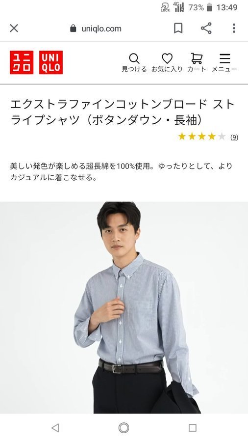 - UNIQLO ストライプシャツ エクストラファインコットンブロード ストライプシャツ(ボタンダウン・長袖)青