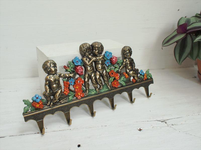 - ビンテージインテリア雑貨*イタリア製・壁掛け装飾・天使のフック・大☆金具飾りディスプレイ