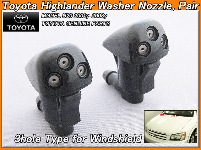 > クルーガー前期/TOYOTA/トヨタHighlander純正USウォッシャーノズル左右2点ブラック3つ穴-フロントガラス用/USDM北米仕様ハイランダー黒色