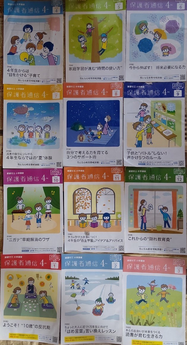- ★ 送料安 ★【 進研ゼミ 小学講座 保護者通信4年生 12冊 4月~3月】中古品 保護者アドバイス