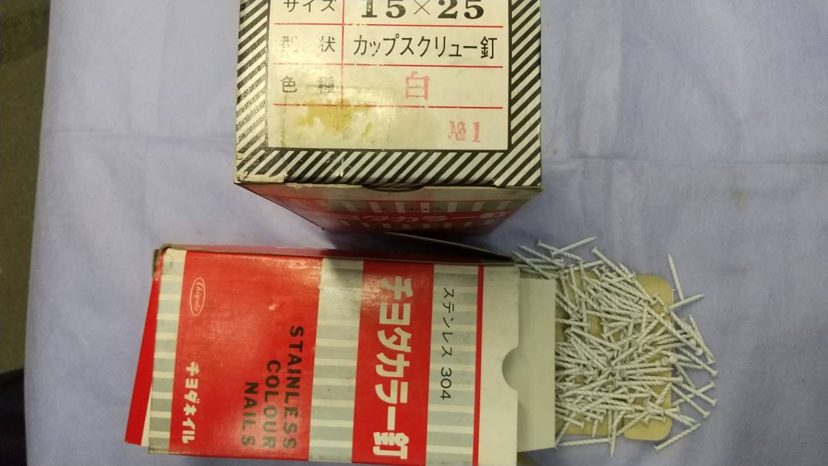 - 白カップスクリュウー釘 カップ頭 ステンレススクリュウー釘 白着色 ♯15×25㎜ 1kg×2箱 送料無料