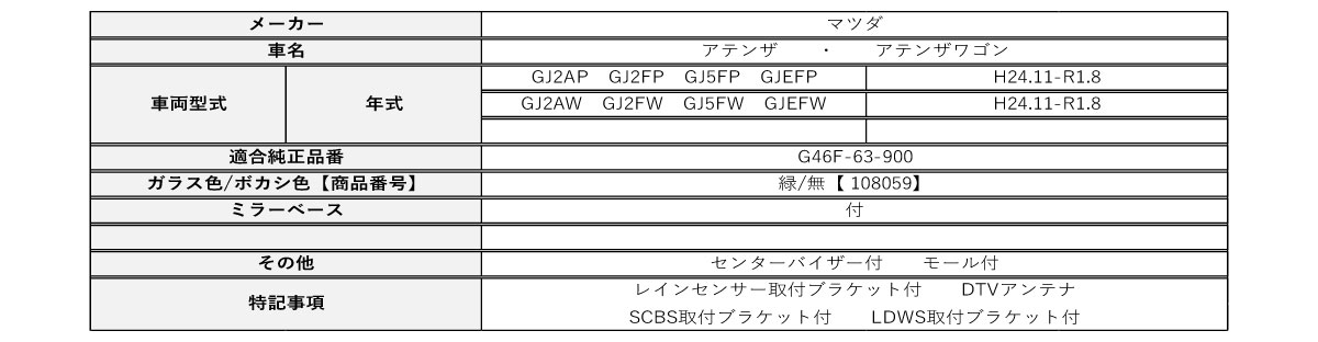 - 1◇新品◇UV&IRカット断熱フロントガラス◇アテンザ GJ2AP GJ2FP GJ5FP GJEFP レインセンサー SCBS LDWS DTVアンテナ モール付 108059