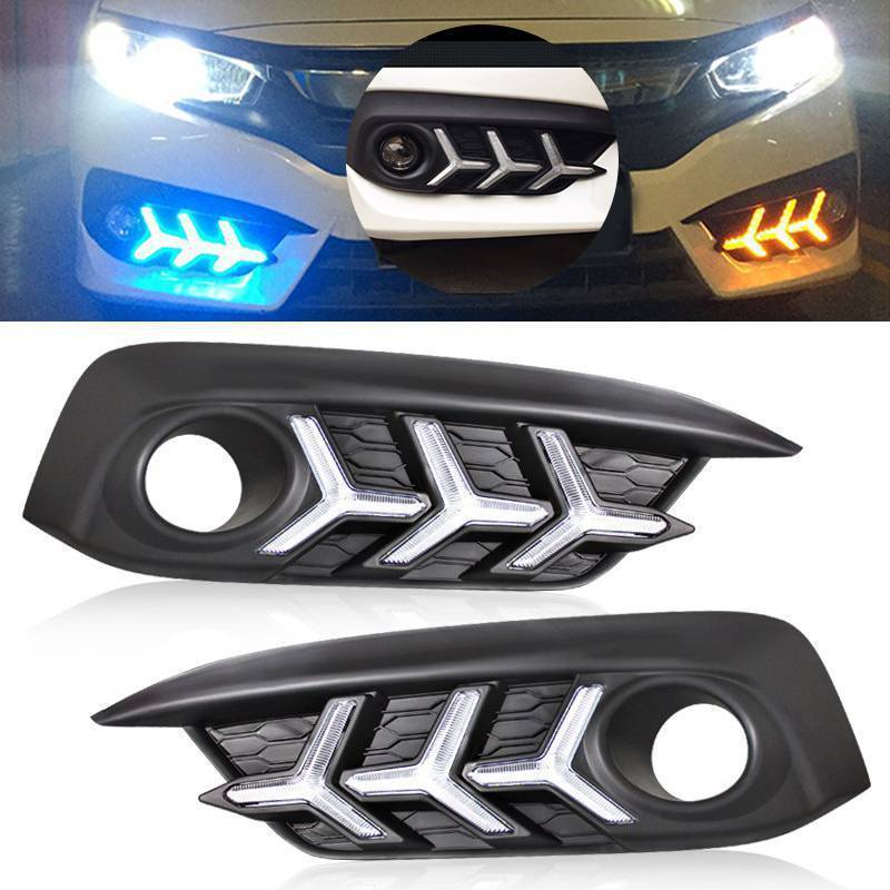 > 2個セット スタイリング 外装 カスタム ホンダシビック 2016 2017 2018 フロントバンパー DRL ウインカー ライト シビック MO