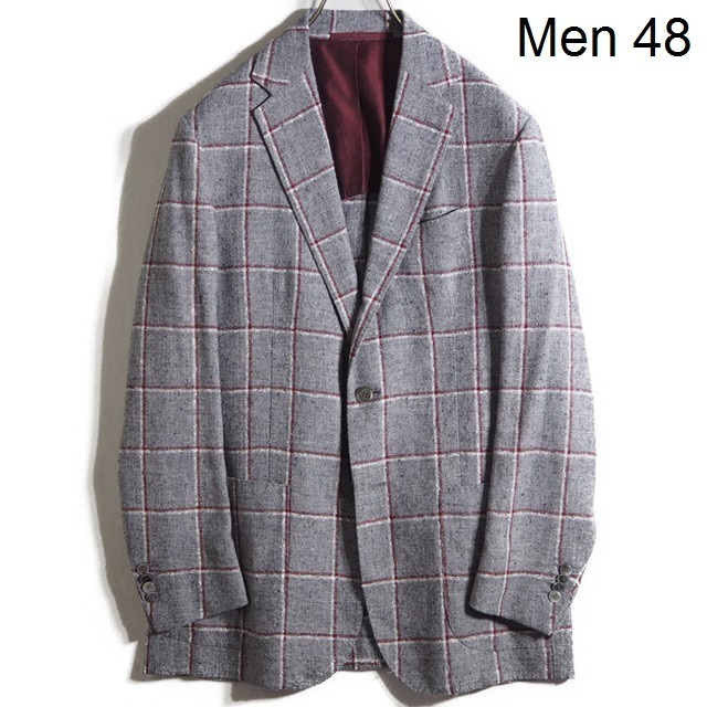 - U5182P ▼Stile Latino スティレラティーノ▼ リネン混ネップ テーラードジャケット グレーチェック 48 / ウィンドウペーン 春夏 rb mks