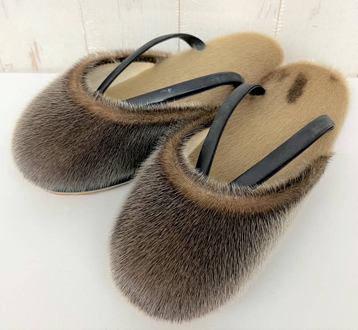 - 寒冷地用 *御誂 最高級本革 希少素材アザラシ あざらし *防寒草履 ぞうり 草履 *冬対応グリップ底 日本 和装 和装小物 天地部分 約23cm