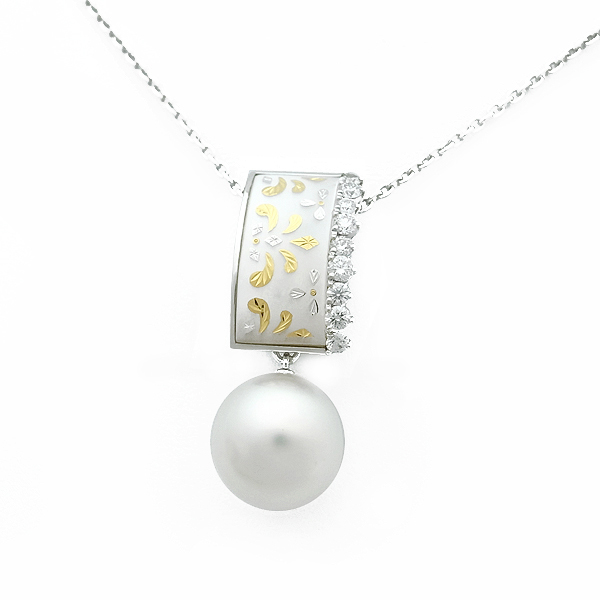 | コメント | 華やかさと上品さが共存するデザイン「幻」と呼ばれた技術を現代に復元させた「ピクウェ」。虹色に煌めく白蝶貝(ホワイトシェル)に丁寧な金細工を施し、9石のダイヤモンド(計0.38ct)を飾ったペンダントに艶やかなパール(12.2mm)が優美に揺れるミキモト(MIKIMOTO)のネックレスです。立体的なデザインが異素材の織り成すコントラストを際立たせています。 ペンダントのパールは取り外しが出来、2WAYでお使い頂けます。トップ部分と擦れてしまったのか、パールに薄っすらとしたスレ傷御座います(画像参照)。 パール含むトップ全長32.5mmx最大幅11.6mmx厚9.3mm ネックレスチェーンはアジャスター付(最長43cm・最短39.5cm)で取り外し可能。 総重量11.6g 緑屋商品番号:5006937 | | 程度 | 中古Aランク | | 素材・色 | K18WG | | サイズ | ネックレスチェーン43cm(アジャスター付) | | 付属品 | ギャランティーカードなし 箱なし |