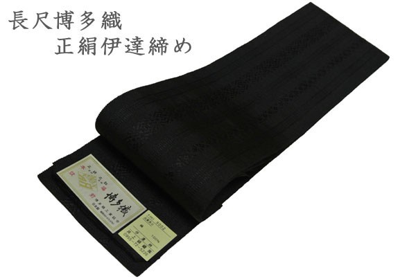 - 博多伊達締め 長尺 ロングサイズ 本場筑前博多織 伊達締 無地 ブラック 黒色 正絹伊達締め だてじめ 博多伊達締め メール便