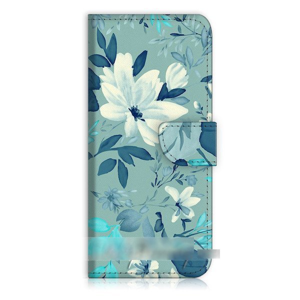 - iPhone 5C 青い花柄 フラワー 抽象画 スマホケース 充電ケーブル フィルム付
