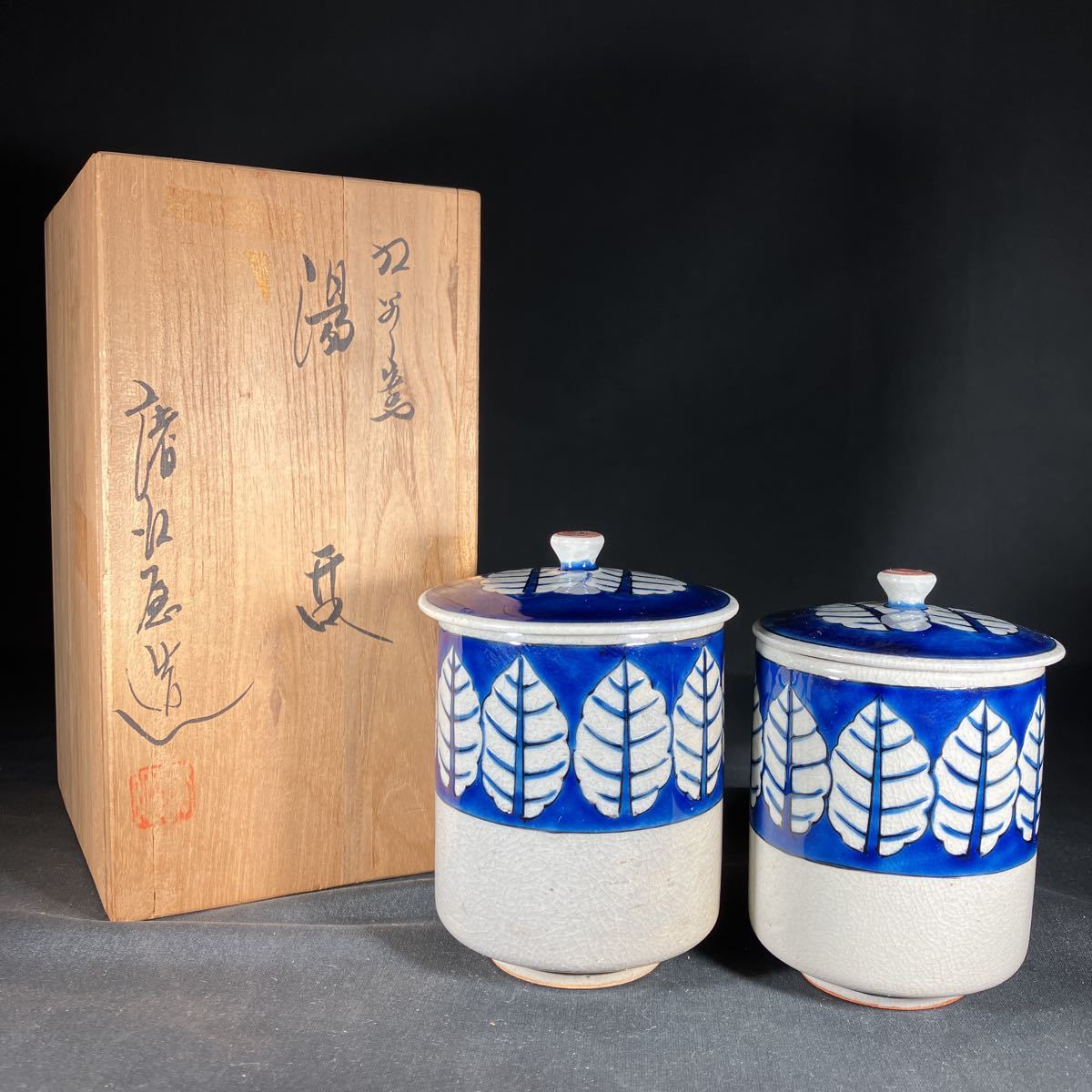 - 武田有恒造 (九谷有恒)湯呑み 共箱 夫婦 888