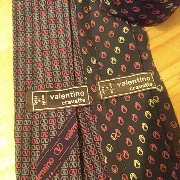 - ビンテージ Valentino バレンチノ ネクタイ シルク100% ロゴ 総柄 USED 2点