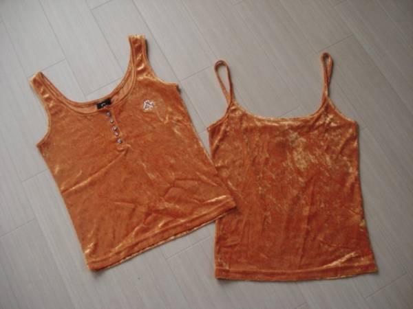 > 美品 ピンキー&ダイアン 光沢 オレンジカラー アンサンブル セット キャミソール ノースリーブ トップス レディース 38 Mサイズ 9
