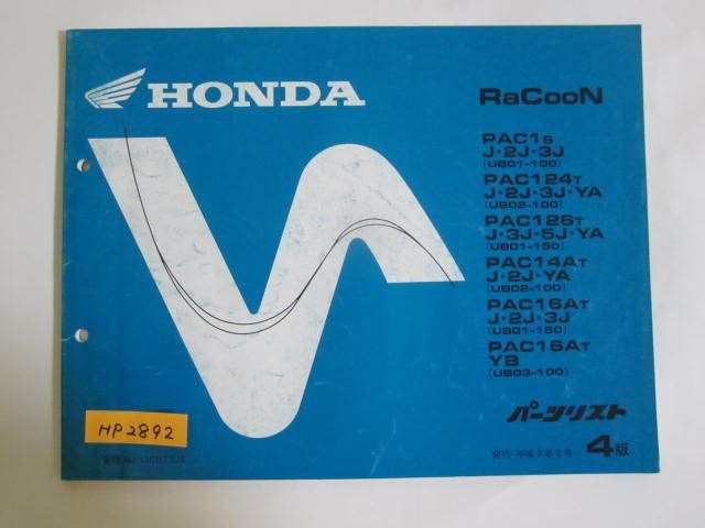 - RaCooN ラクーン UB01 UB02 UB03 4版 ホンダ パーツリスト パーツカタログ 送料無料