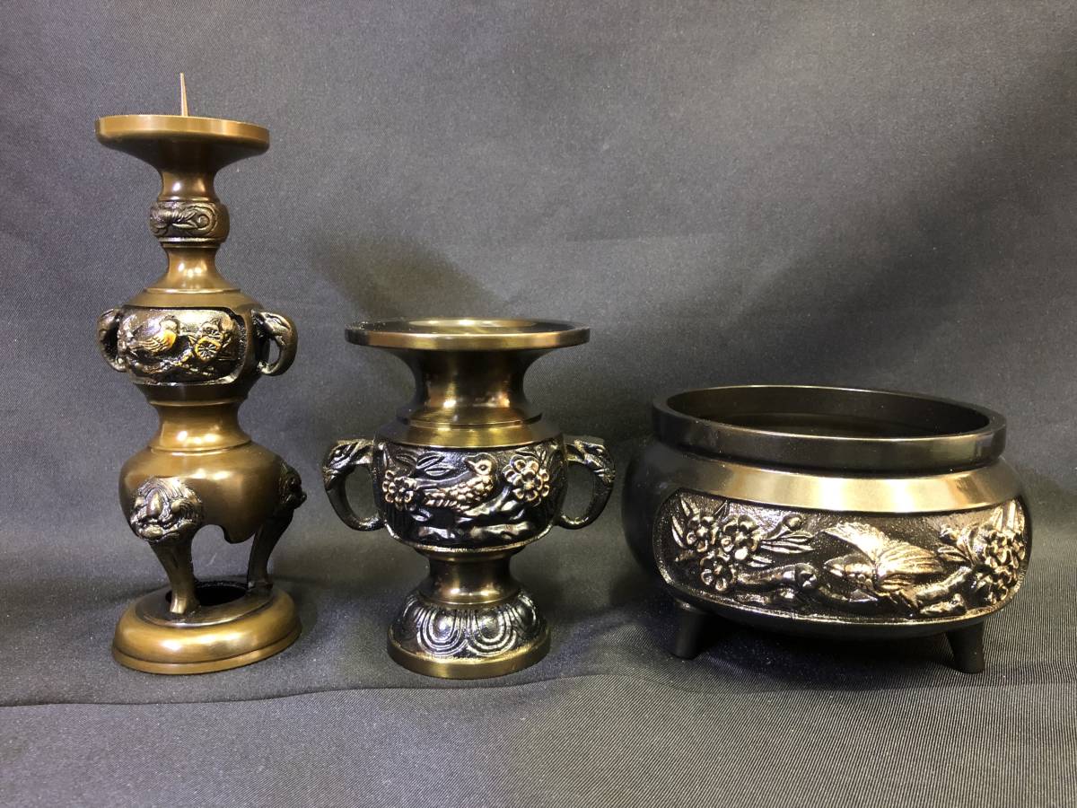 - ●花鳥 三具足 花立・灯立 ・香炉になります セットがあっているか分かりませんので画像にて判断ください。