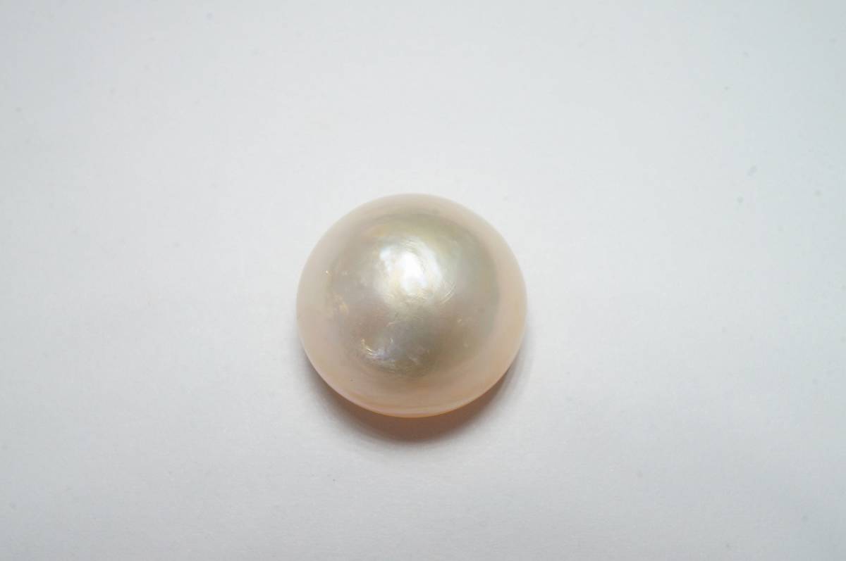 > 【即決特別価格!早い者勝ち!】天然本真珠マベパールテリ良し!【約20.6ct,4.1g/17.8mm 】マベ貝半円真珠極上品