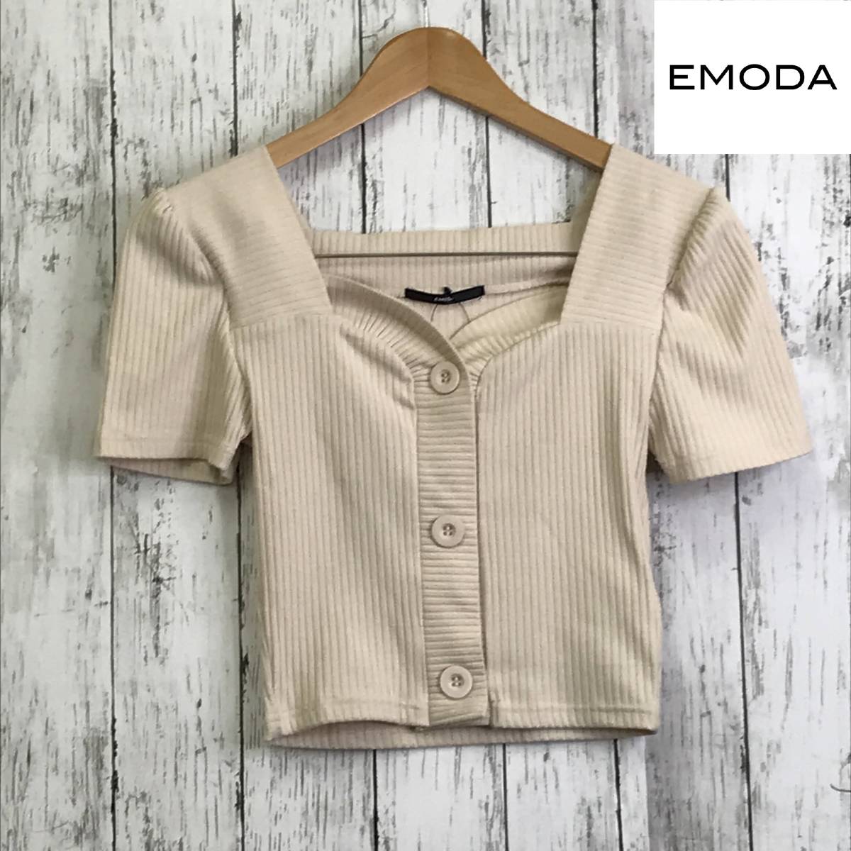 - EMODA エモダ フロントボタンショートリブトップ Fサイズ アイボリー コンパクトなサイズ感 S6-147 USED