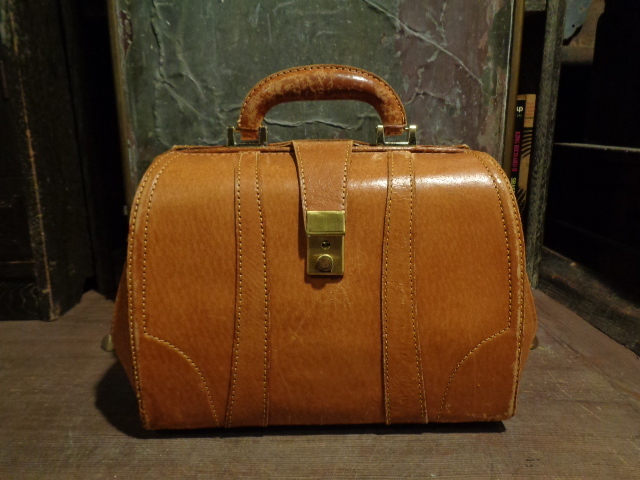 - 【本革の鍵付きドクターバッグ】トランクレザー鞄ポーチ旅行セカンドバッグインテリア収納ケース古道具アンティーク古着インダストリアル