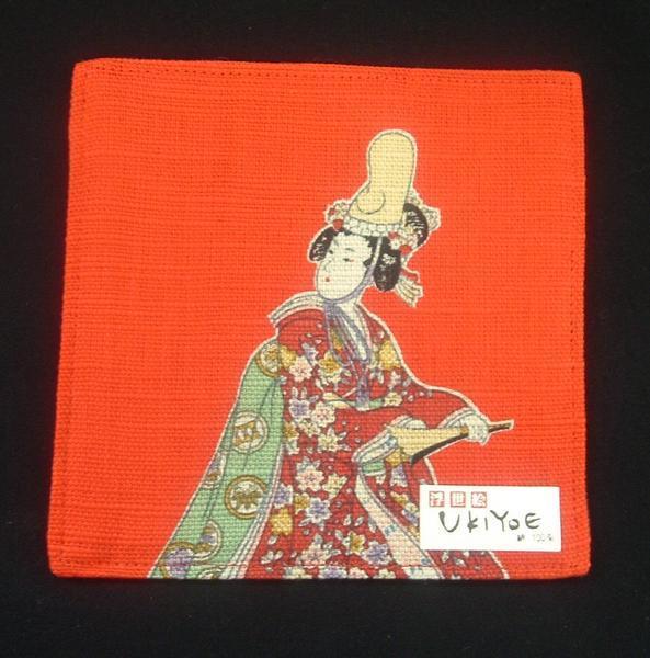 - 6117 綿 浮世絵 コースター「赤・浄瑠璃」-
