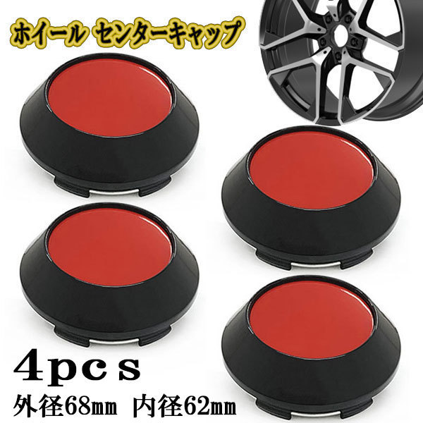 > ホイールキャップ センターキャップ タイヤ ハブ 交換 外径68mm 内径62mm シール対応 G 4個 ブラック×レッド