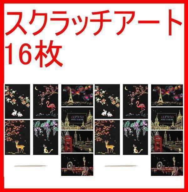 - スクラッチアート 大人 子供 花【16枚】 世界と風景 カラフラ ペーパーアート プレゼント ペン付き