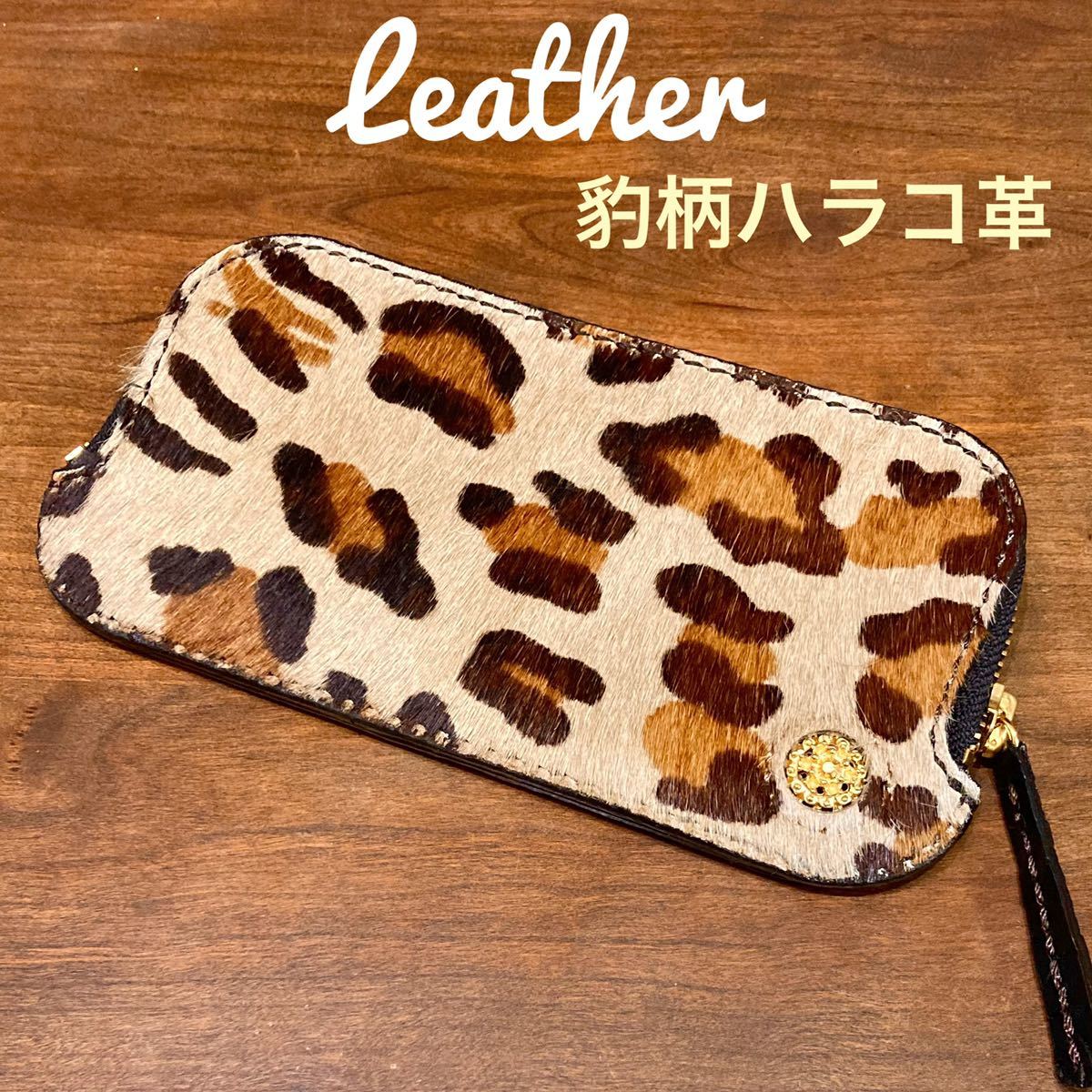 - [本革] 豹柄ハラコ 毛皮 手縫い ファスナー長財布 ロングウォレット