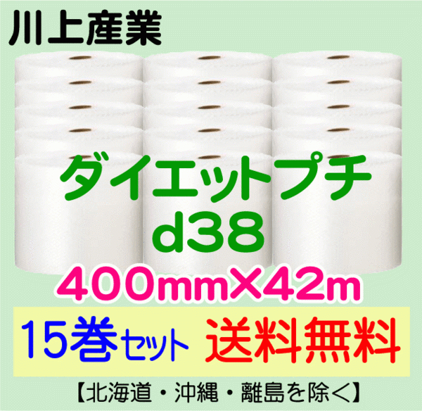 - 【川上産業 直送 15巻set 送料無料】d38 400mm×42m エアークッション エアパッキン プチプチ エアキャップ 気泡緩衝材