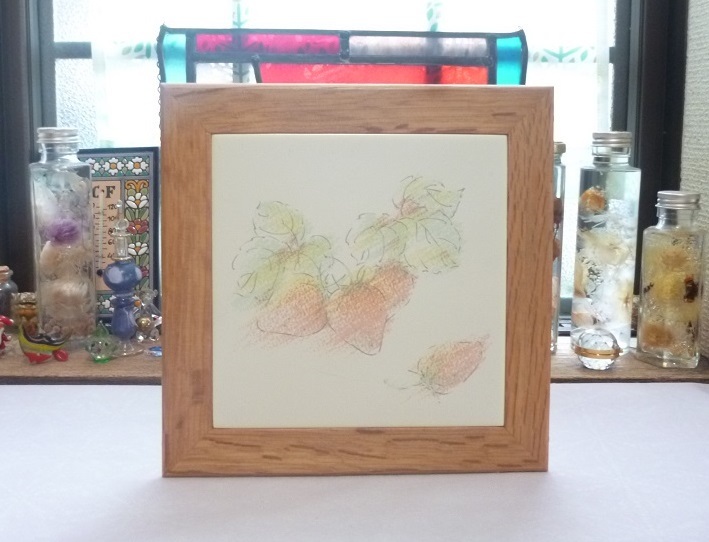 - Й 絵タイル いちご Й タイル アート 飾り オブジェ 置物 壁掛け 壁飾り